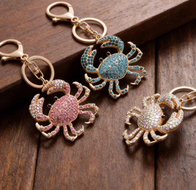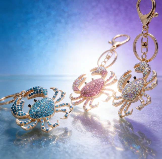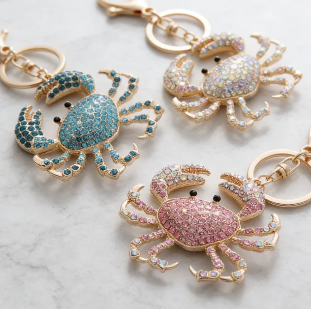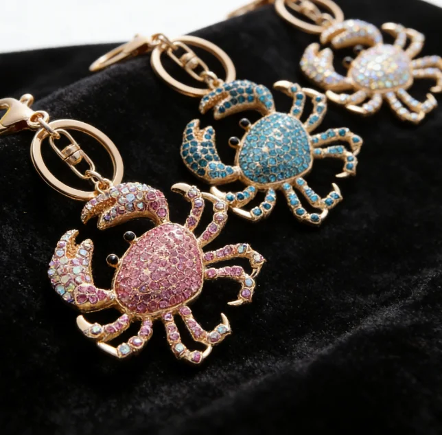 with colorful rhinestones showing a bling bling shining effect under light it not only retains the vivid shape of the crab but also enhances the delicacy through the rhinestone inlay craft whether hanging on a backpack or as a key accessory it can instantly add a fashionable atmosphere it is a small item with both decorative and practical functions.
