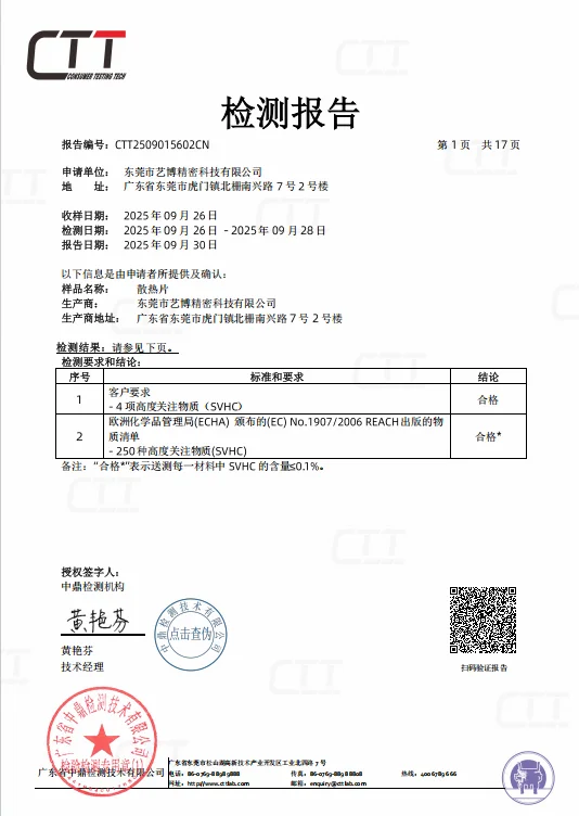 show that SVHCs in each selected material are ≤0.1%. and SVHCs meet the EU product quality standard requirements.