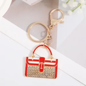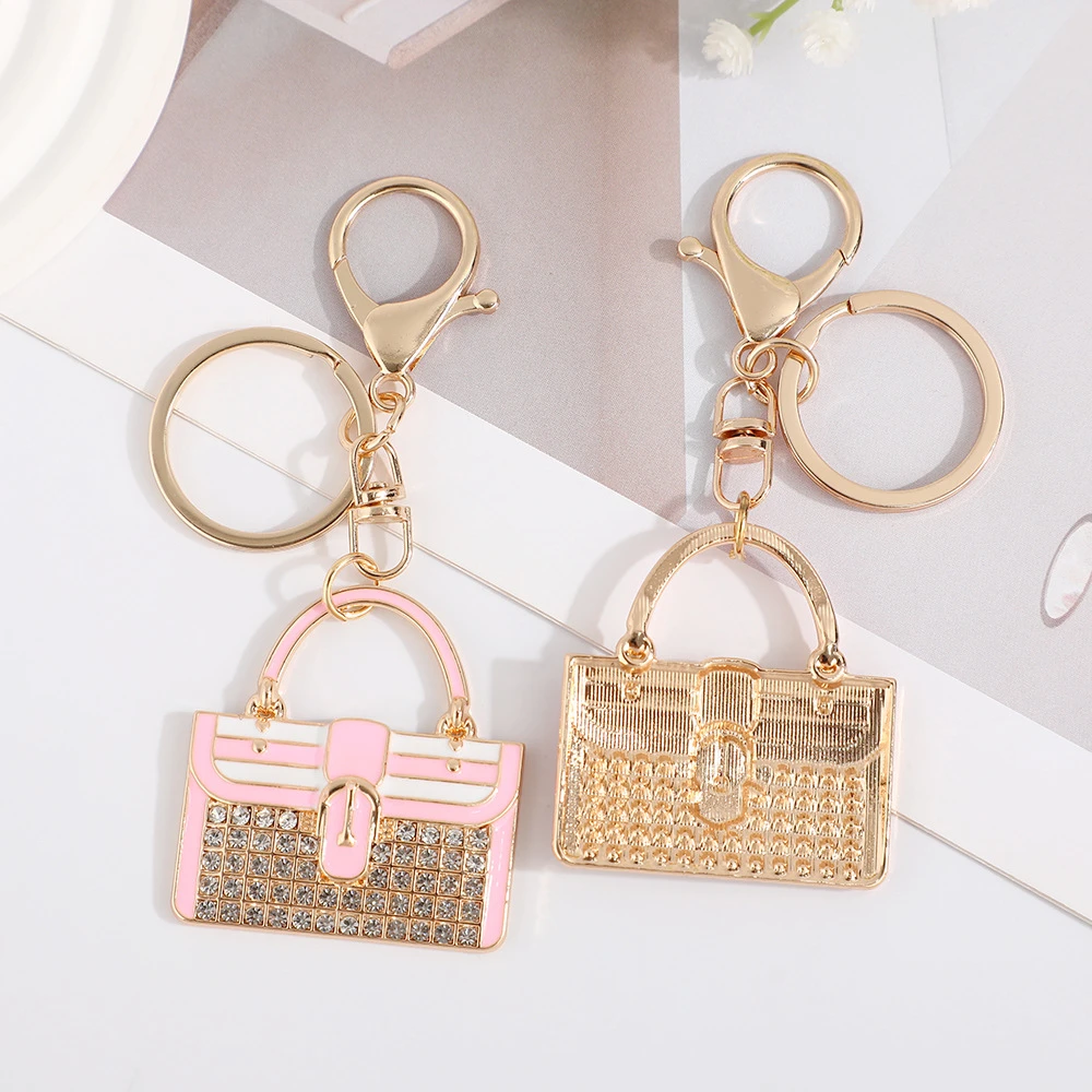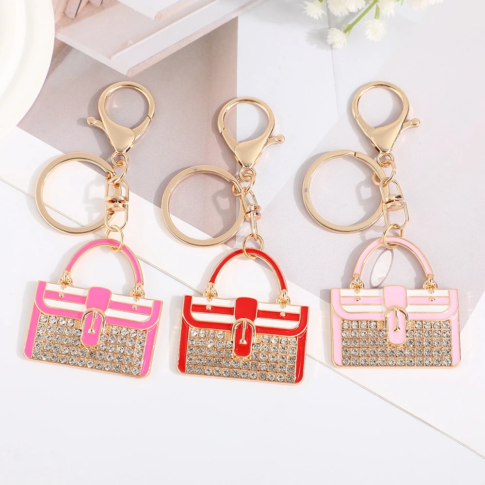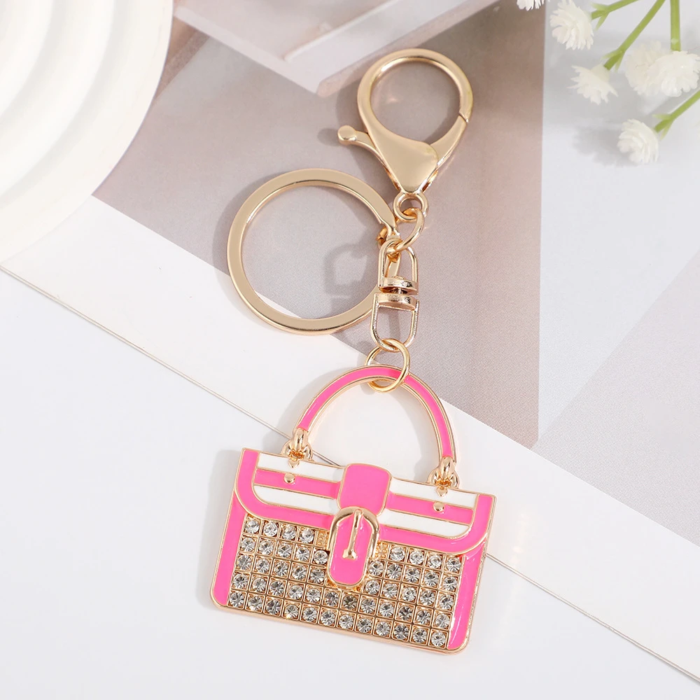 Mother’s Day Colored Metal Zinc Alloy Coin Holder Bag Pendant Keychain Women Fancy Pink Blue Rhinestone Handbag Shaped