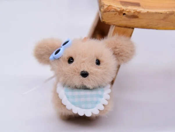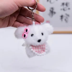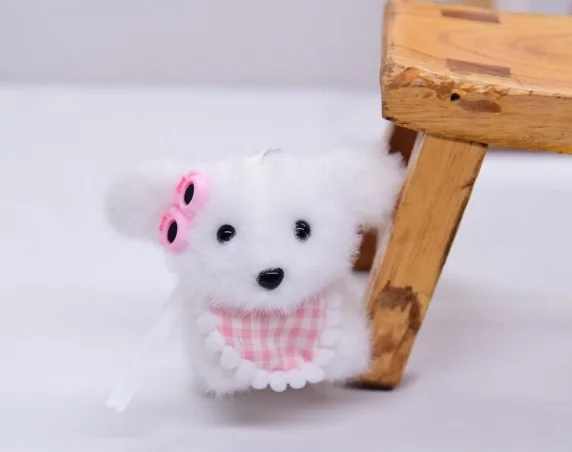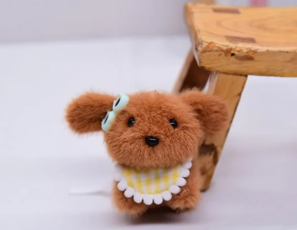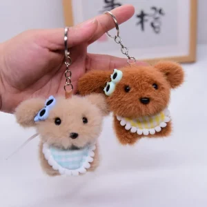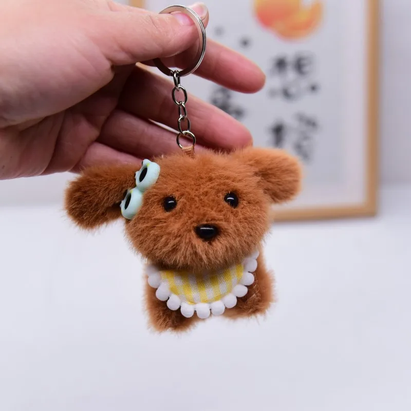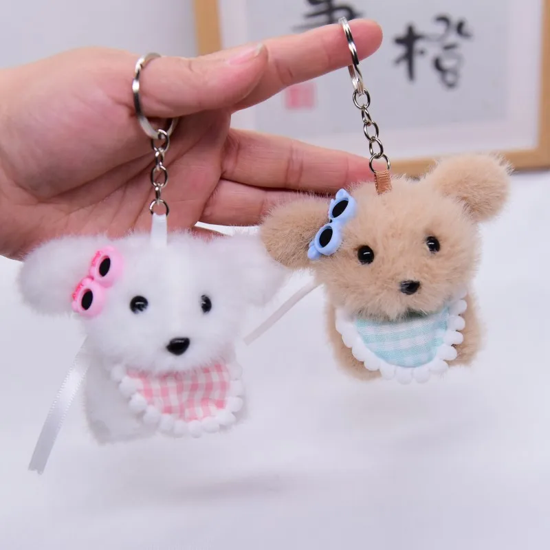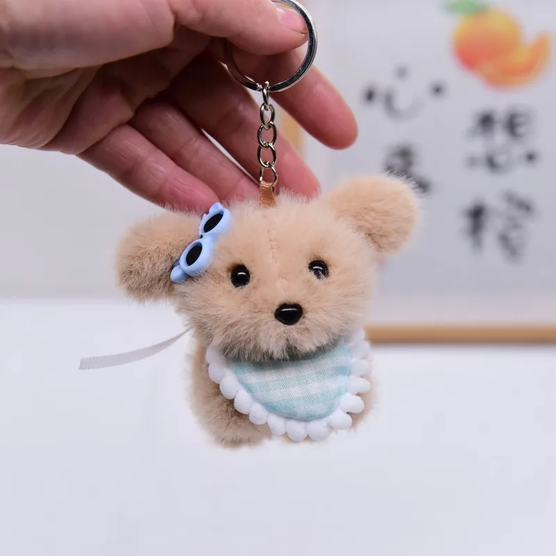 Songshan Toys Lovely Mini Puppy with Scarf Keyring Kids Cute Plush Soft Animals Toys Keychain Kawaii Bag Pendant Gifts for Child